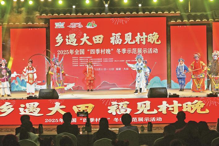 上月11日,全国“四季村晚”冬季示范展示活动,戏曲表演在大田“第二集美学村”进行。