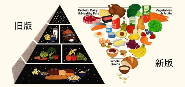 新指南则对这一结构进行了根本性调整,占据倒金字塔宽阔顶部的,是优质蛋白、乳制品、健康脂肪与新鲜蔬果,原本占据大面积的全谷物,被置于尖端。