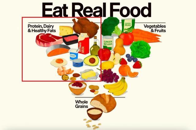 新指南将优质蛋白置于主导地位,同时显著降低碳水化合物的供能比,构建起“中低碳水、高蛋白”的营养框架。蛋白质可维持肌肉量,同时饱腹感强,能平稳餐后血糖,减少胰岛素抵抗的发生(肥胖、2型糖尿病等代谢病的病理基础)。这一转变,或是美国应对公共卫生危机的战略性调整。