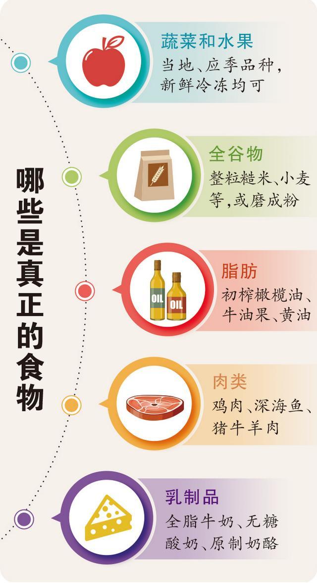 这些建议或许源自一个现状:因较强的味觉刺激与便利性,高度加工食品几乎全面渗透生活,冗长的配料表与复杂的加工流程,早已让食品和天然食物脱钩,这正是诱发超重肥胖、慢病高发的关键因素之一。而从营养的角度来看,如能坚持只吃“真正的食物”,健康饮食的目标可自然实现。